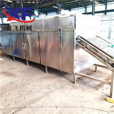 通常情況下,主體是不銹鋼網帶或不銹鋼沖孔鏈板帶透氣率高達70%左右,且熱氣流幾乎是垂直穿透物料,所以熱交換較充分?諝饨橘|分上、中、下層分別與物料接觸,上層為高溫氣流與含水率高的物料接觸,使其能實現(xiàn)快速脫水的目的。中層為室溫氣流,使物料實現(xiàn)后期干燥。因該層氣流穿透物料后,空氣相對濕度不高,固部分循環(huán)回用;下層為室溫氣流,穿透物料層即降低了料溫,又回收了部分熱量,從而滿足了許多食品、工業(yè)和農場物料干燥工藝的特性要求,確保產品的質量。